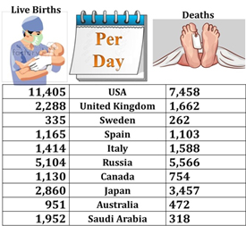 With the onset on COVID 19 and its catastrophic impact there is need to strategically plan for getting the Economy back on track. By much of the conventional methods things do not seem to go forward as the downturn created is massive. Secured Governance offers a unique solution to get through this massive boulder created by the fear and death by this World War III. Let us understand the relative numbers of births deaths in India and Internationally by the enclosed facts and figures to get proper idea and a confirmation that this system would see us through this avalanche.